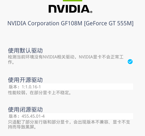 我安装了开源和闭源的显卡驱动,都不行,不知道该换什么版本的显卡驱动。