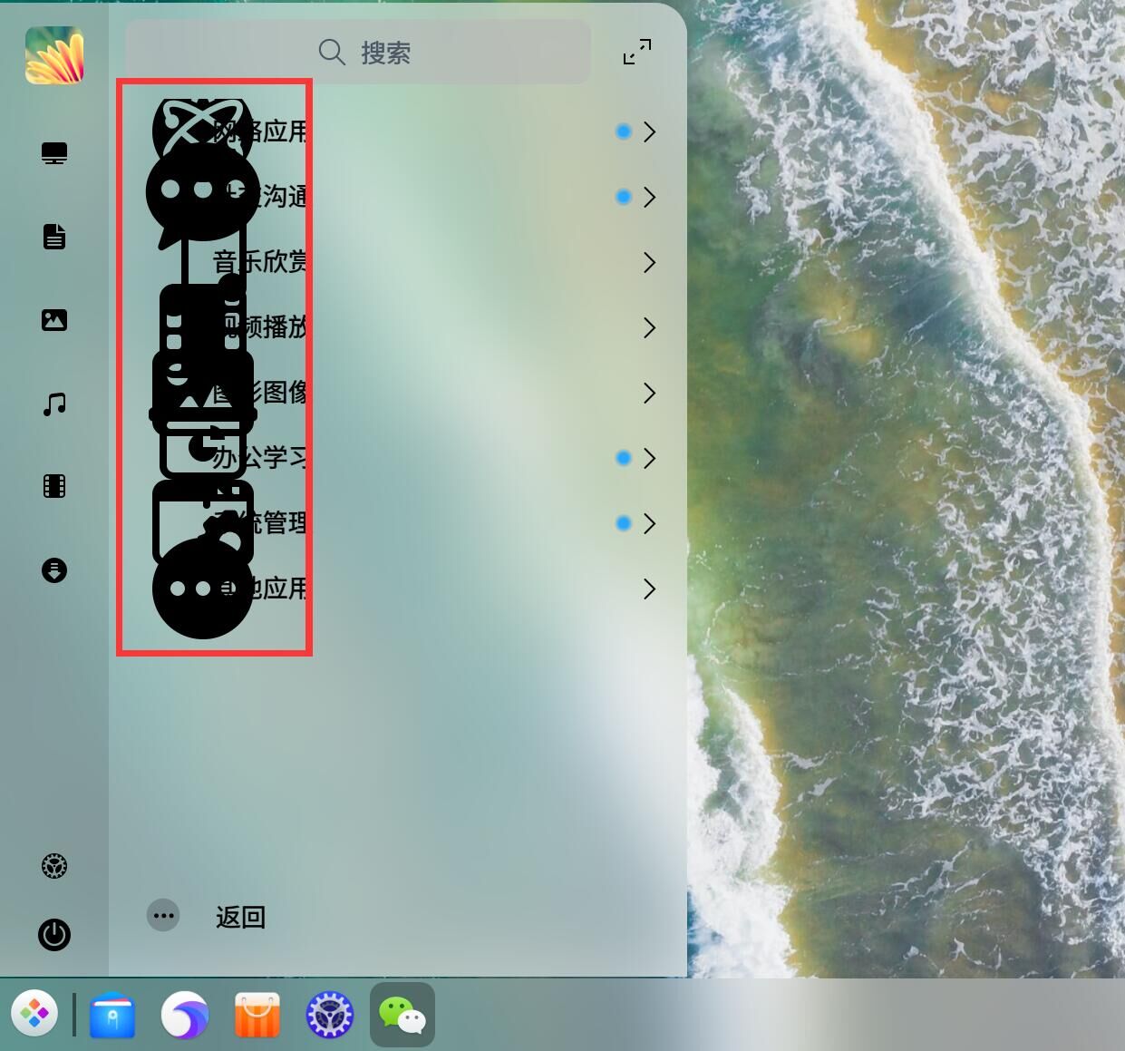 Deepin20.1,点击启动器,在开始菜单里发现这个不明图案,一直存在,不消失。请问这是什么鬼?