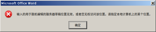 2、(如果无需使用 Word 选项请忽略)在修改 Word 选项保存时会提示“输入的用于脱机编辑的服务器草稿位置无效,或者您无权访问该位置。请指定本地计算机上的某个位置。”,