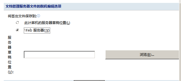 可以把保存里的“文档管理服务器文件的脱机编辑选项”的“将签出文件保存到:”的选项选择为“Web 服务器(W)”或正确的内容