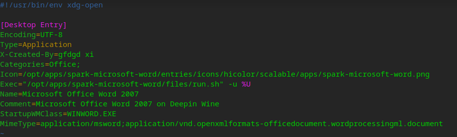 模仿一下官方商店的qq的.desktop,Exec=的结尾有-u %u参数,可以传递文件路径。run.sh里面我记得默认传递参数的。然后.desktop里面再加上MimeType=xxxxxxxx应该就能打开doc文件了。
