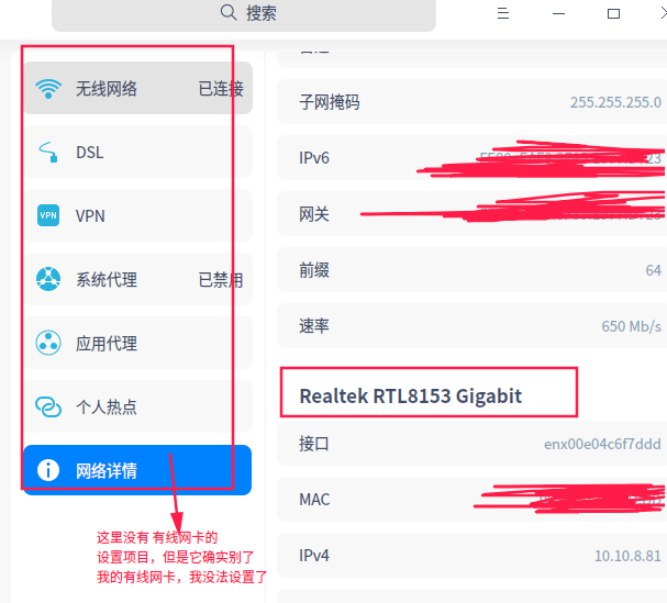 如上图没有 有限网卡的 配置项了,但是却能识别网,还能上网,dock栏上也没有 有限网卡的图标,但是当我把 hdmi 拔掉 就有了