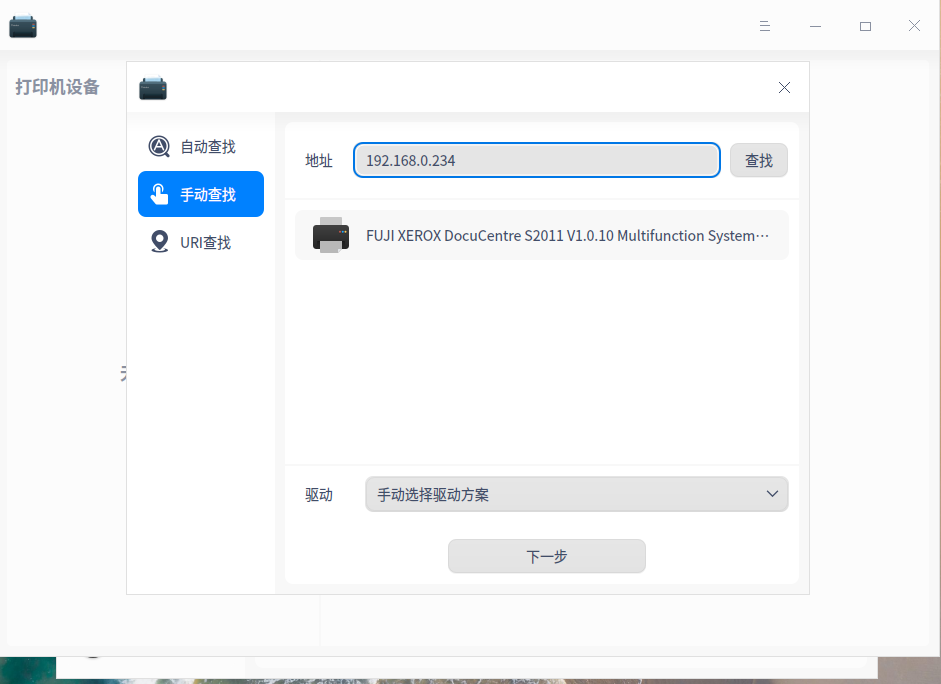 如题,deepin已经更新到了最新,安装打印机(Fuji Xerox DocuCentre S2011),能自动搜索到(型号是对的),手动也可以,但在本地驱动里找不到对应的型号,手动输入打印机名称和型号搜索,能搜出来驱动,但是无法安装,提示安装失败,请问哪位大神知道解决的办法,非常感谢。