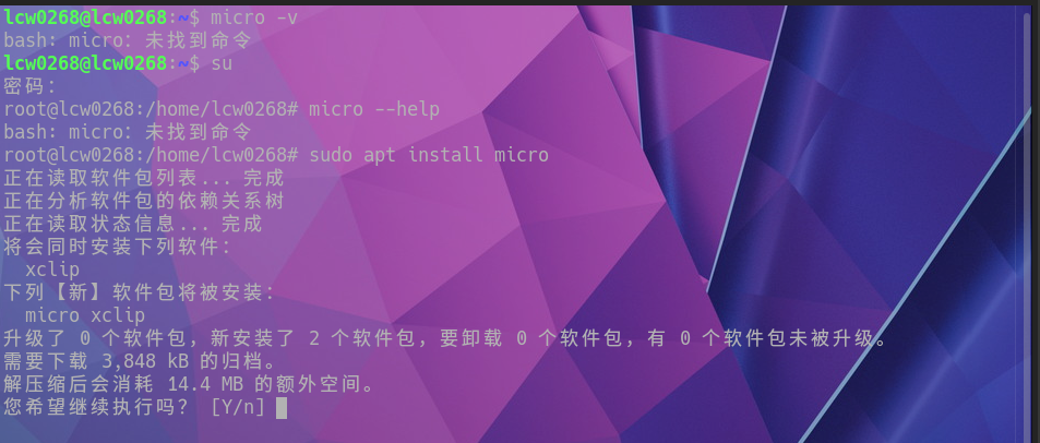 -bash: micro:未找到命令
