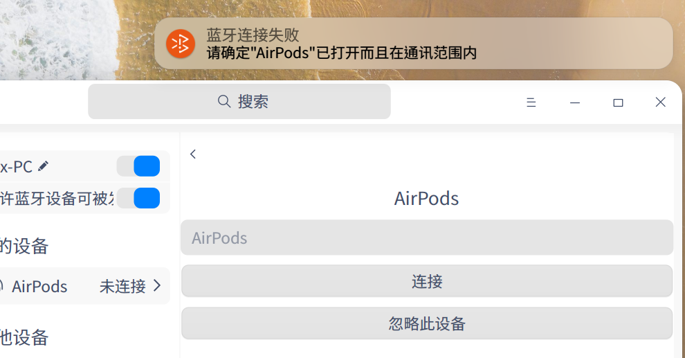如上图,我的deepin20.1,每次连接我的airpods只能成功一次,如果中途断了,则再也连不上了,而且就算连接成功,也无法正常听到音乐,在控制中心选择输出设备Headset或者A2DP都没声音,只能用电脑喇叭公放,求教这是为什么?