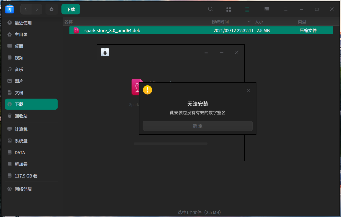 uos个人版无法安装星火应用商店