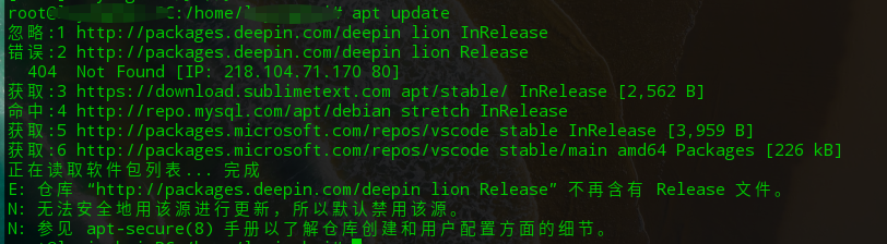 看你那边解析的IP,你用的应该是中科大的源,它的deepin源确实已经不支持15.1了。