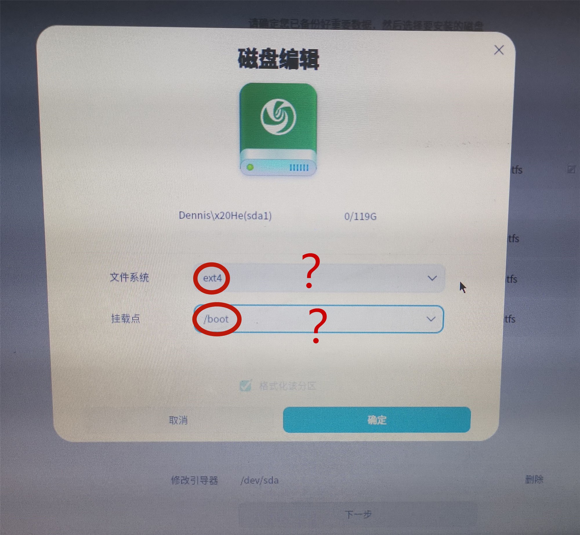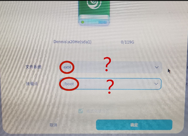 2、如果选择手动安装,但跳出来的文件系统和挂载点该怎么选择?
