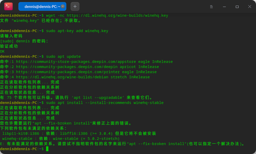 我安装最新的winehq6会遇到我无法解决的错误。。于是狗头选择了wine-4