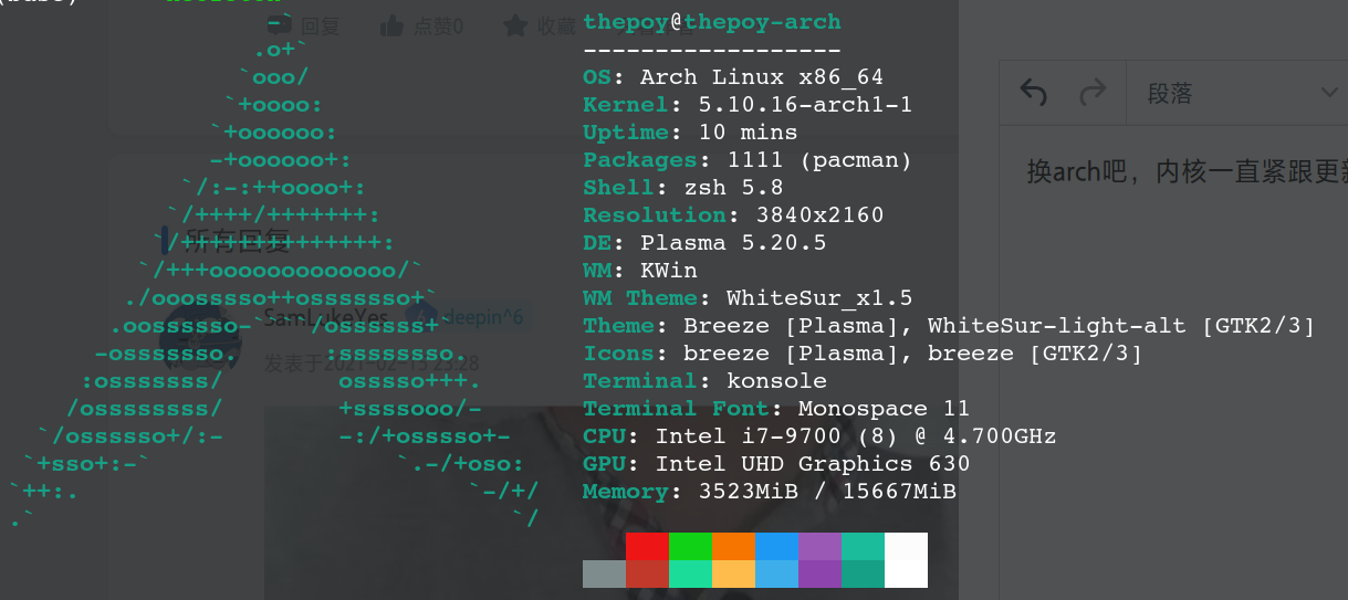 不过 Arch 的问题是对 deepin-wine 的软件支持没有 deepin 好。目前我还没找到一款 linux 发行版对 wine 软件的支持能跟 deepin 一样好的。