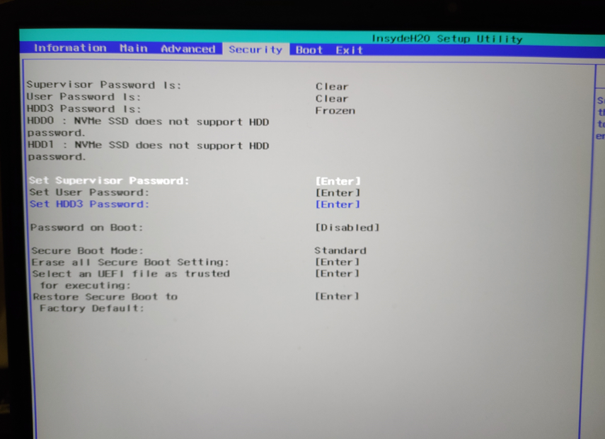 网上说要关闭BIOS的secure boot,但是我的设置项都是灰色的,按照其他帖子介绍的,设置密码了就能改,可我设置了密码依旧是灰色。