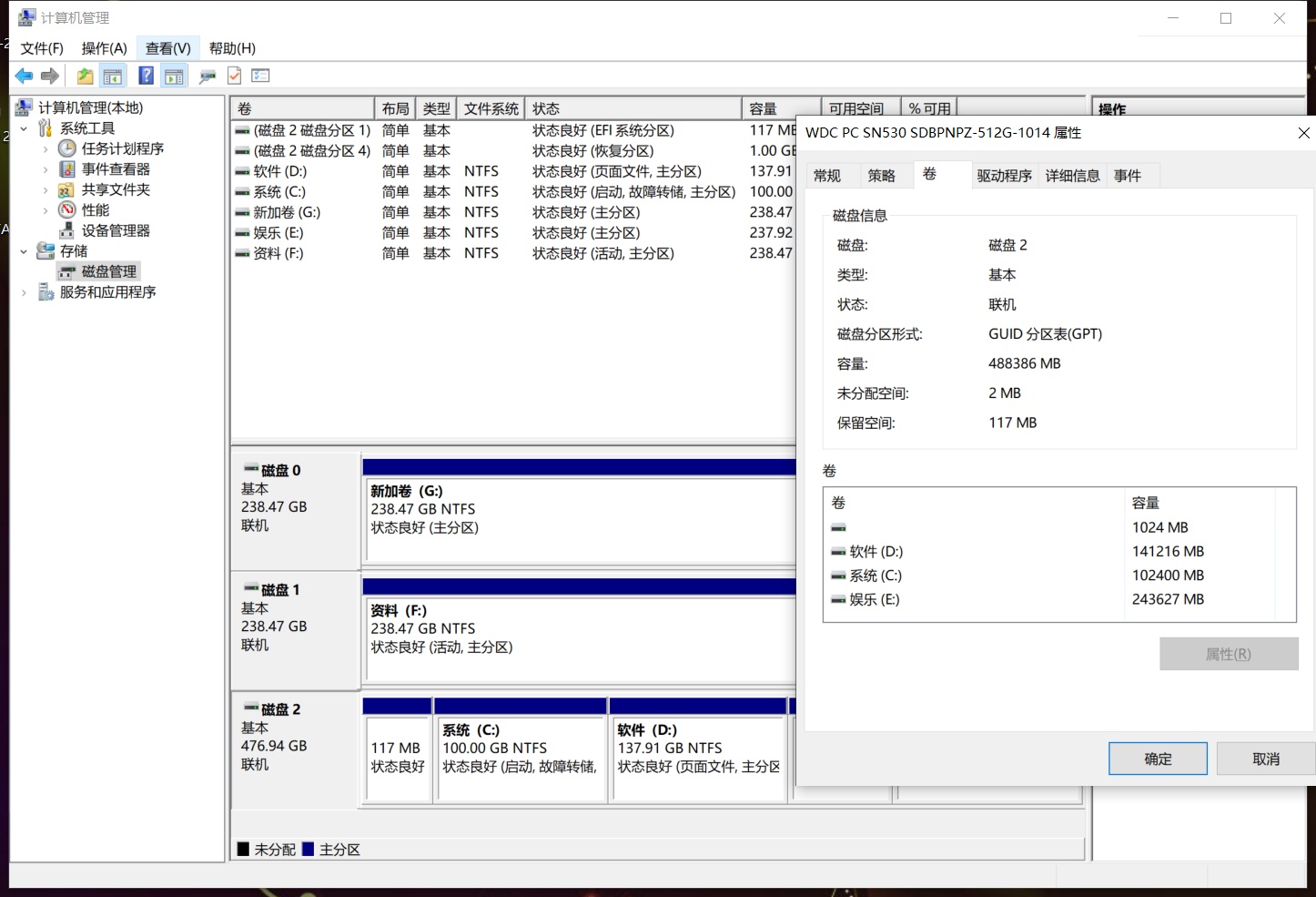 在网上看有人说是不同磁盘的分区表格式不同,会导致没法添加引导,目前三块硬盘的分区如下: