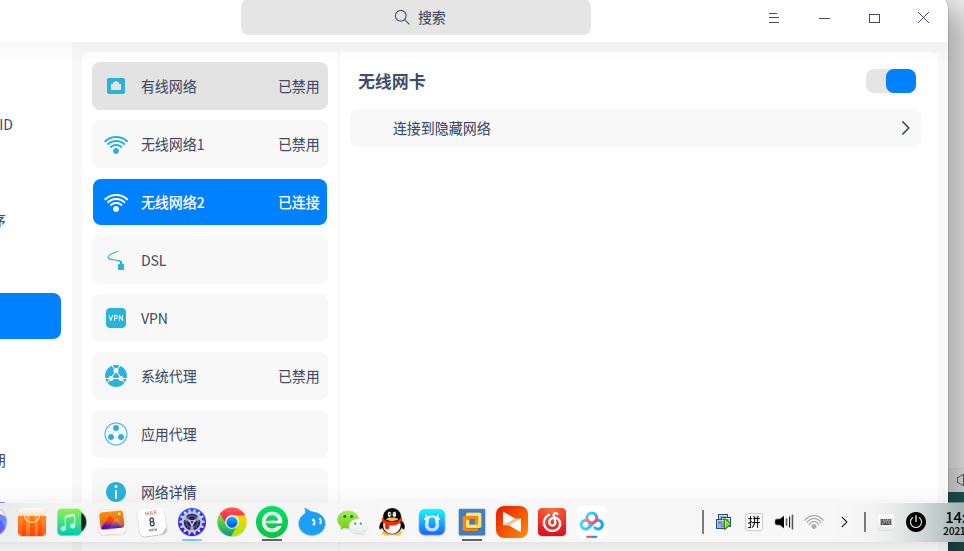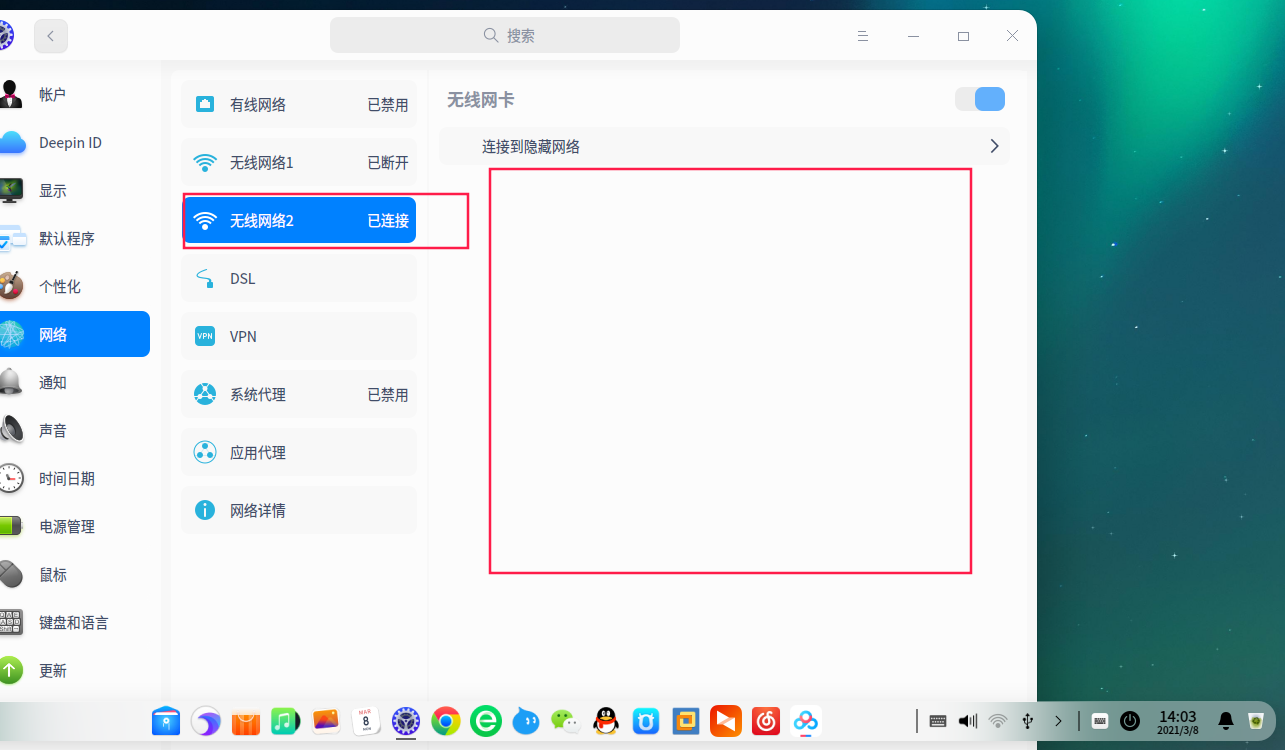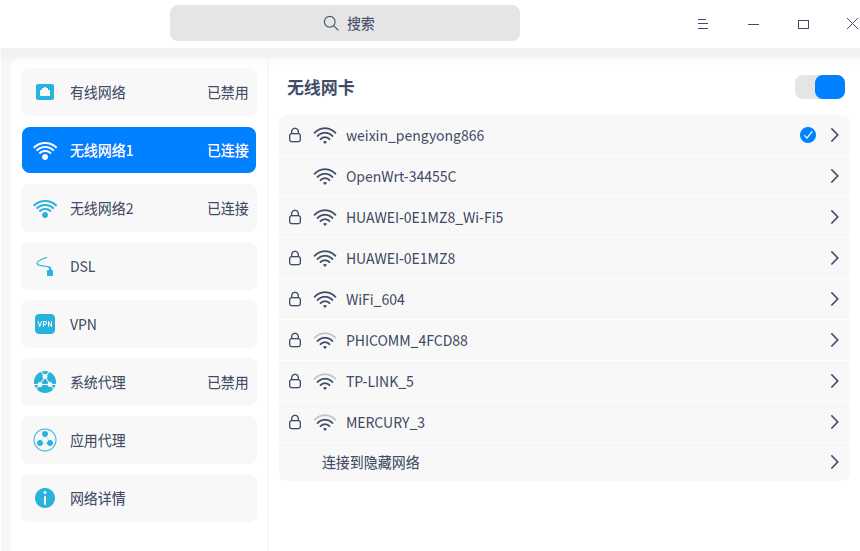 BUG:双WIFI网卡,网络列表不显示,如图,无线网络中,只有一个显示列表,另一个会自动链接之前保存的网络