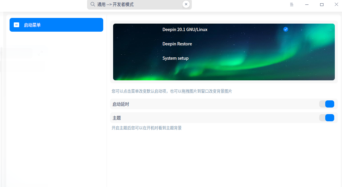 通用里面只有一个启动菜单,搜索栏里可以搜到开发者模式,但是界面里没有,请问这怎么办啊,刚装好的新系统