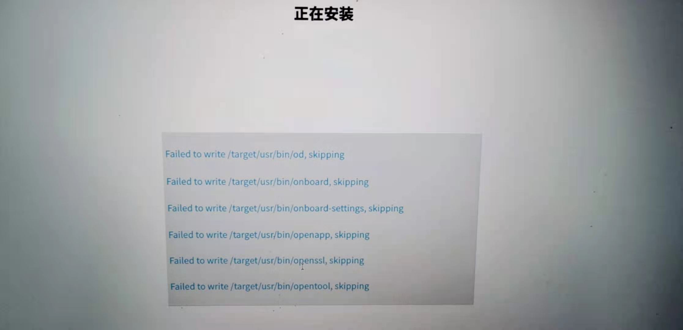 安装提示Failed to write /target/user/bin/opentool,skipping