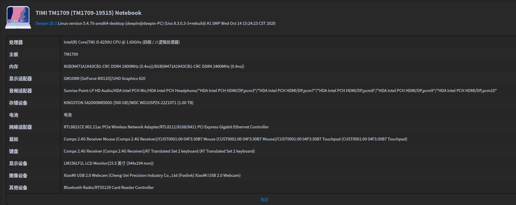 系统我是安装的大概半年前下载的镜像,安装完后我就使用命令或者设置里面的更新升到最新了,内核我没有换过,是系统默认的。我现在重新安装了Deepin,打算只安装几个基本软件,使用一下看看有没有可能是什么软件导致的。你需要的配置信息如果是之前系统软件信息的话,现在找不到了。如果是我电脑硬件信息的话,我明天发一下。