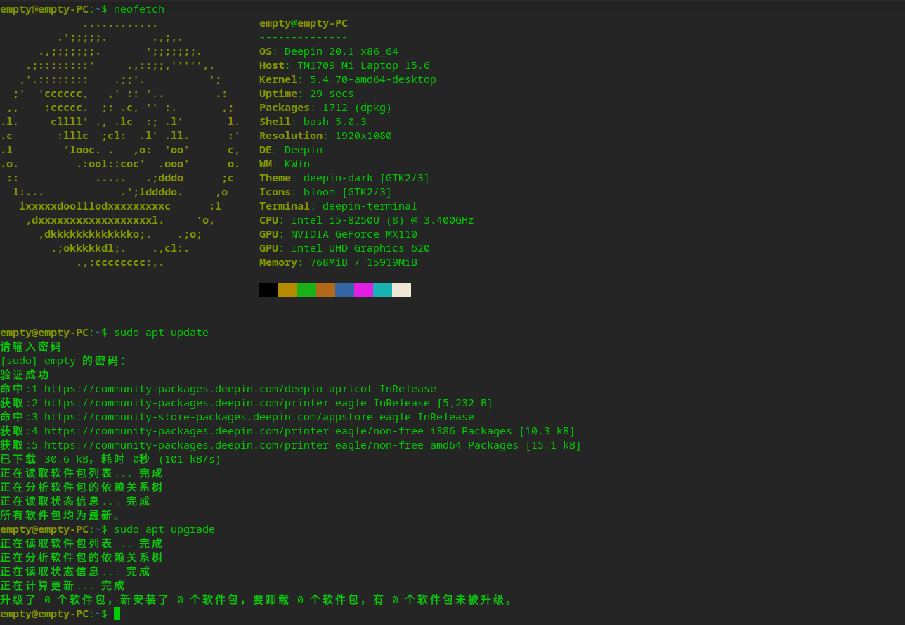 这是新安装的Deepin系统(已升级最新)(目前只安装了一个搜狗输入法)