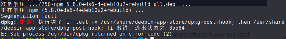 执行sudo apt install npm后,在处理npm包时报错,如下图。请各位大神支招,该如何解决?
