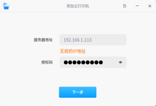 我在windows 7 系统安装了服务端上面的显示的ip就是这个,但是在deepin用云打印连接的时候显示无效ip