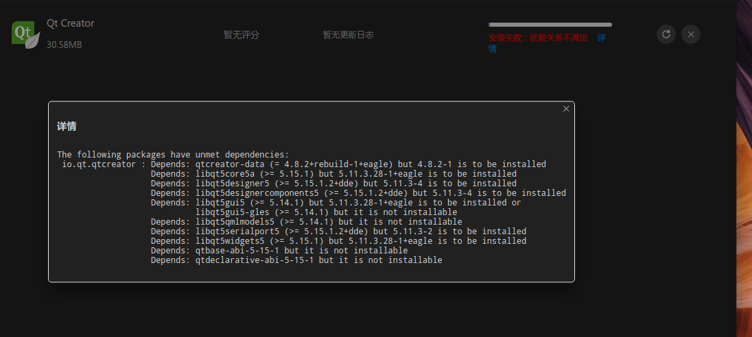 ???离谱,商店新版本的 Qt Creator 是 5.15 的,但是源里面 Qt 的版本还是 5.11.3,没法更新......