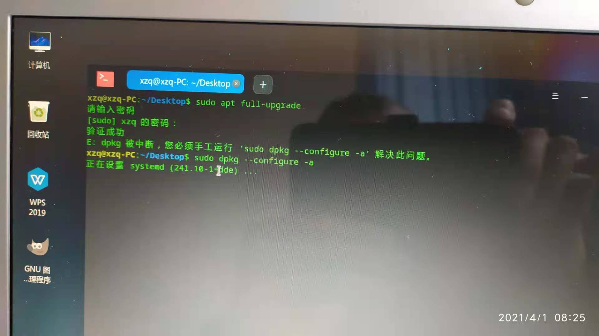 更新V20.2死机。强制重启后再更新,提示系统更新失败。试sudo apt full-upgrade,后还死机。怎么办?