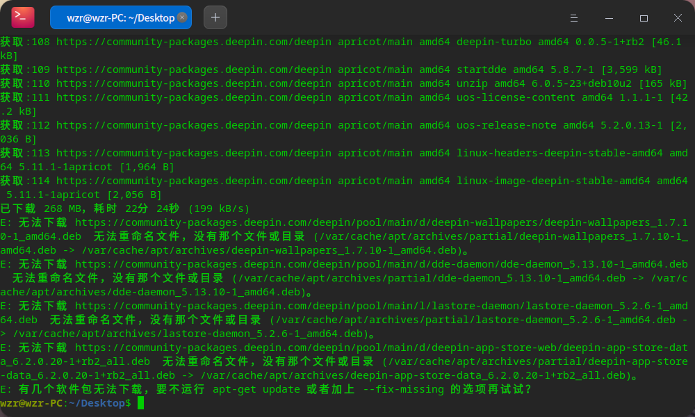 好害怕 我sudo apt upgrade了 怎么办 现在小水管105kb/s正在下载更新中 会不会翻车啊