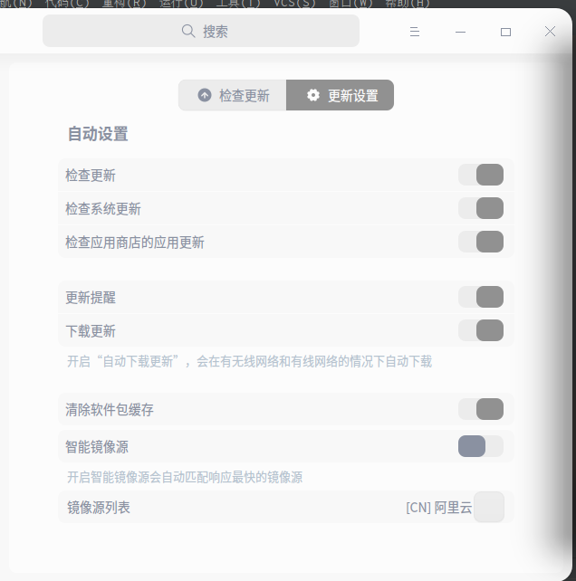但是发现速度并没有提升,而且当我再次点击更新设置时,镜像源又变回官方的了