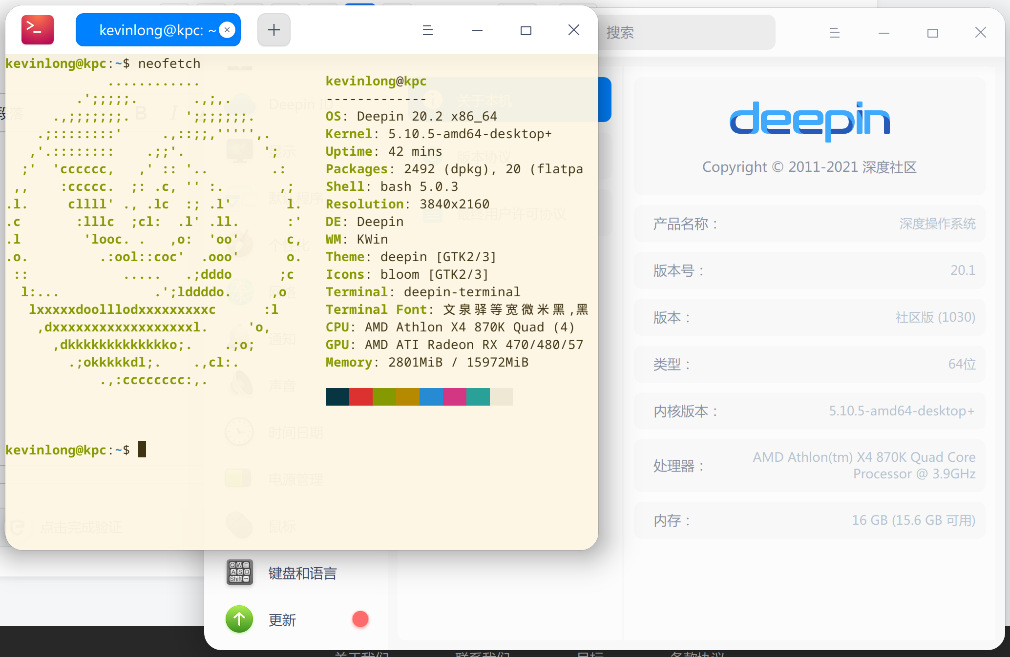 更新失败,结果很感人, neofetch 显示的是 20.2, 控制中心显示的是 20.1