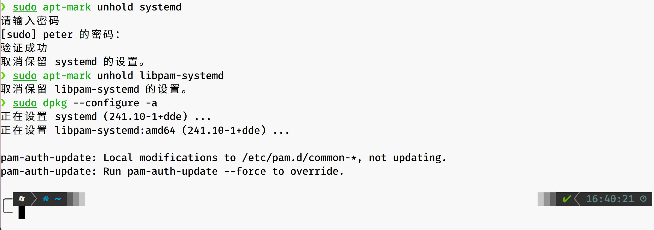 把libpam-systemd也hold了,然后重启,再用linux5.11启动,再把libpam-systemd和systemd全部unhold
