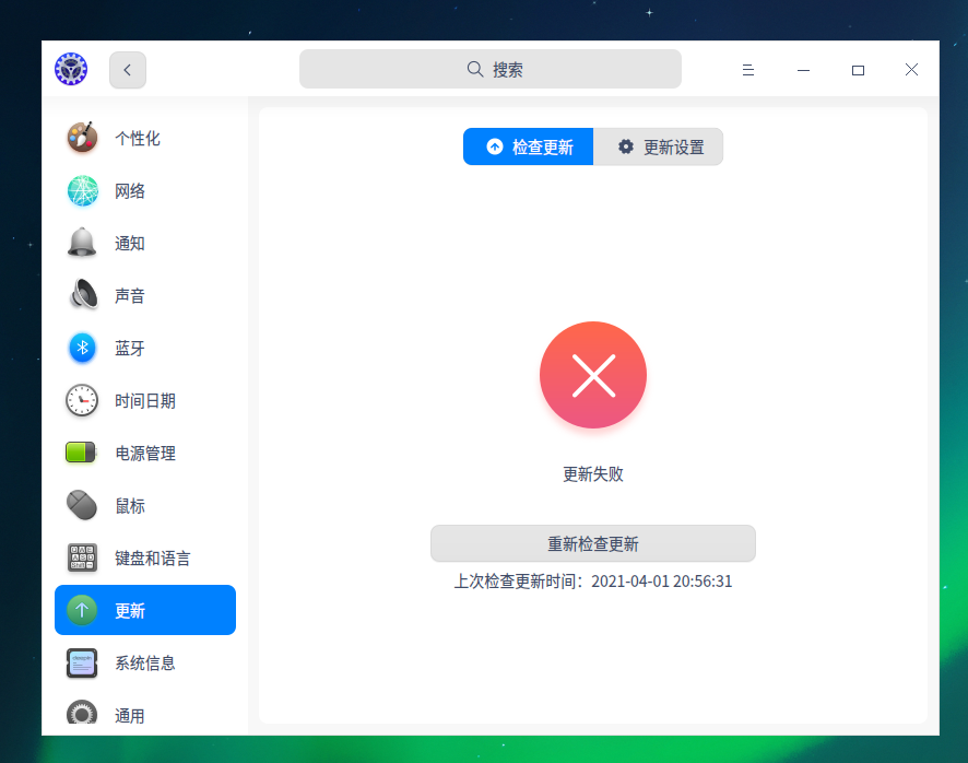 用命令行来升级. 控制中心里的升级会因为第三方源而失败.