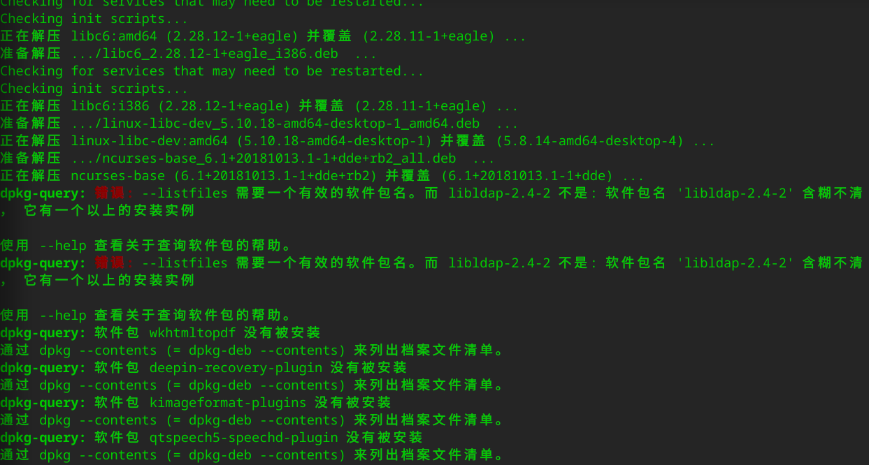 dpkg-query: 错误: --listfiles 需要一个有效的软件包名。而 libldap-2.4-2 不是: 软件包名 'libldap-2.4-2' 含糊不清, 它有一个以上的安装实例