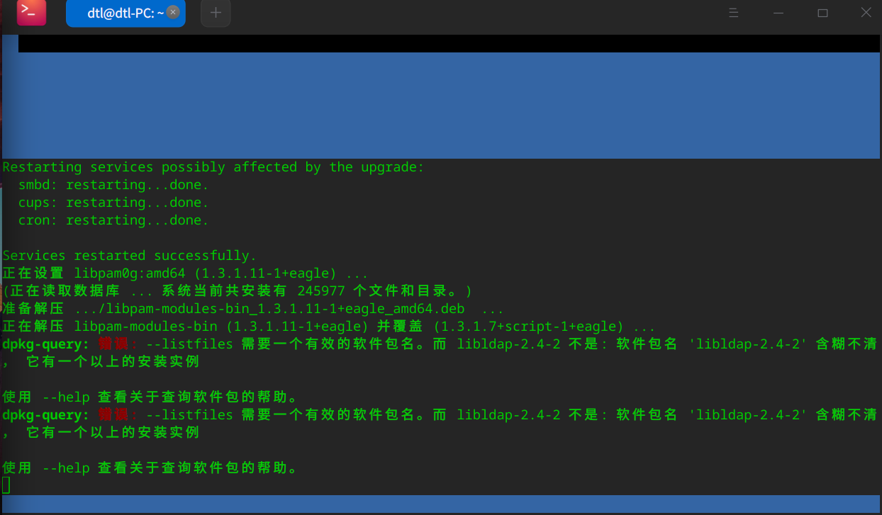 使用 --help 查看关于查询软件包的帮助。我按照置顶升级也出现类似dpkg-query错误,现在进不了桌面,只能tty2.正在下载iso准备重装系统了。