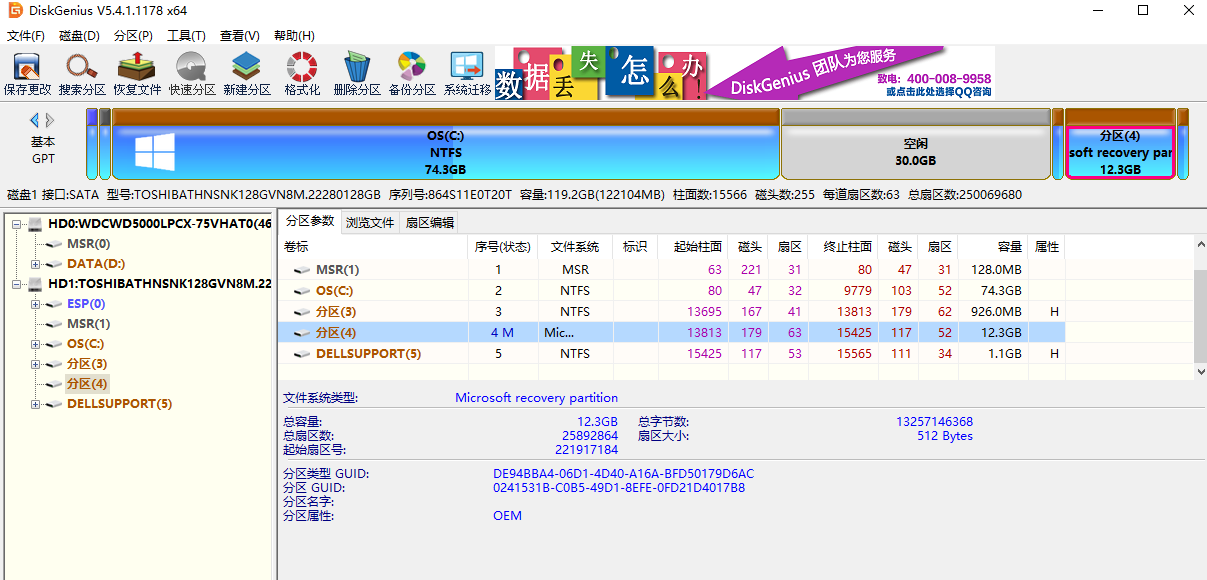 请问有没有大佬知道途中12G空间的Microsoft recovery partition的用途,以及是否可以减少空间占用,如何操作?在网上查不到相关信息