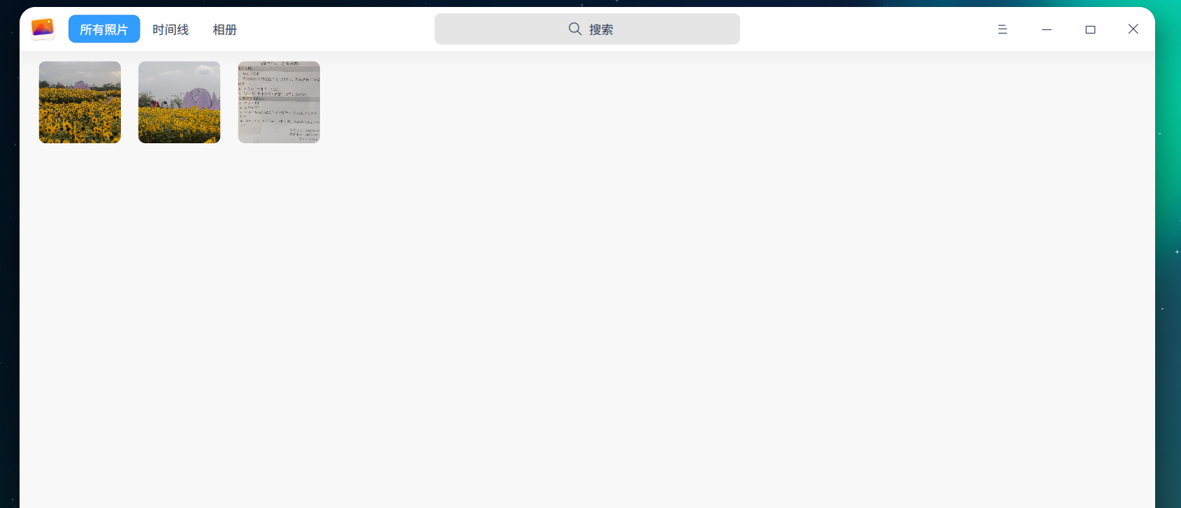 每次在文件管理器中对选中的某个图片文件进行双击浏览,点右上角关闭按钮后,并不是回到了文件管理器窗口,而是回到了相册管理器本身。如下图所示