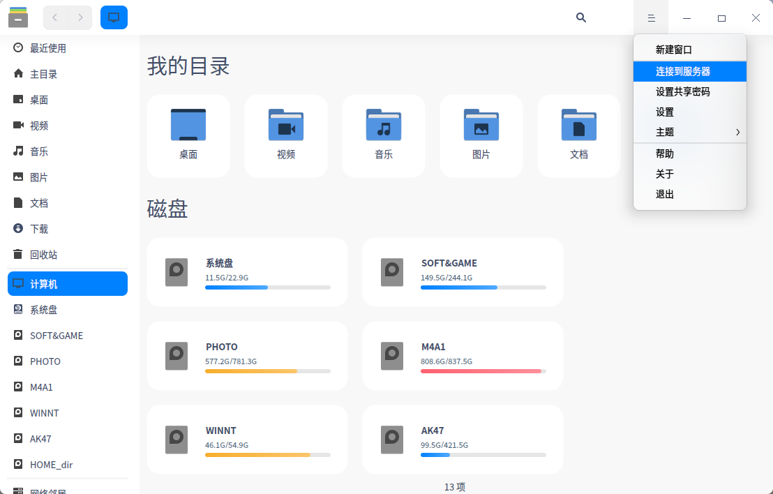 如果要进入共存主机需要查到对方的IP,在文件里“连接服务器进入”