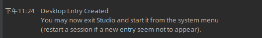Command 'sudo /home/yiem/.cache/Google/AndroidStudio4.1/tmp/create_desktop_entry_.sh' returned 3 Output: xdg-desktop-menu: No writable system menu directory found.
