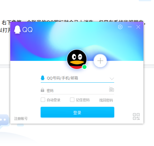在第一次登录QQ后,如果再次双击QQ来登录第二个账号,右下角第一个账号的QQ图标就会马上消失,但是在系统监视器中,第一个QQ账号没有退出,按下快捷键(Ctrl+Alt+Z)就可以打开界面,但是仍然没有任务栏右下角图标。
