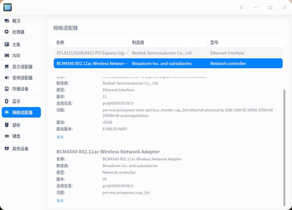 把 bcmwl-kernel-source 卸掉, 然后重启。若还有问题,就把 sudo dmesg 和 lsusb -nnk 的输出贴一下。sudo apt-get purge bcmwl-kernel-source 之前用的这个命令 之前无线网卡是被禁用的 用了上面指令 无线网卡可以用了 之前是显示禁用 现在可以用了 也不能禁用了 右下角没有无线网络 求大佬帮忙解决下 谢谢