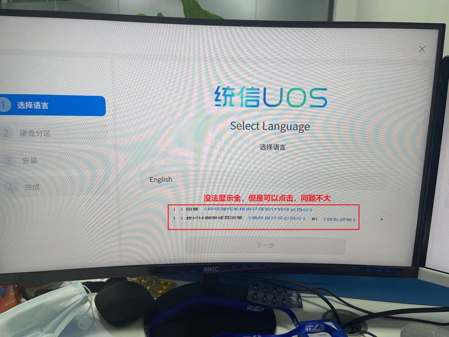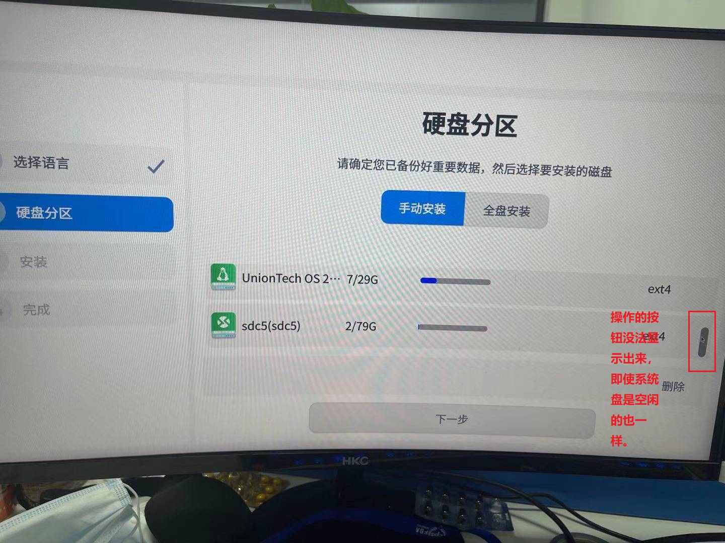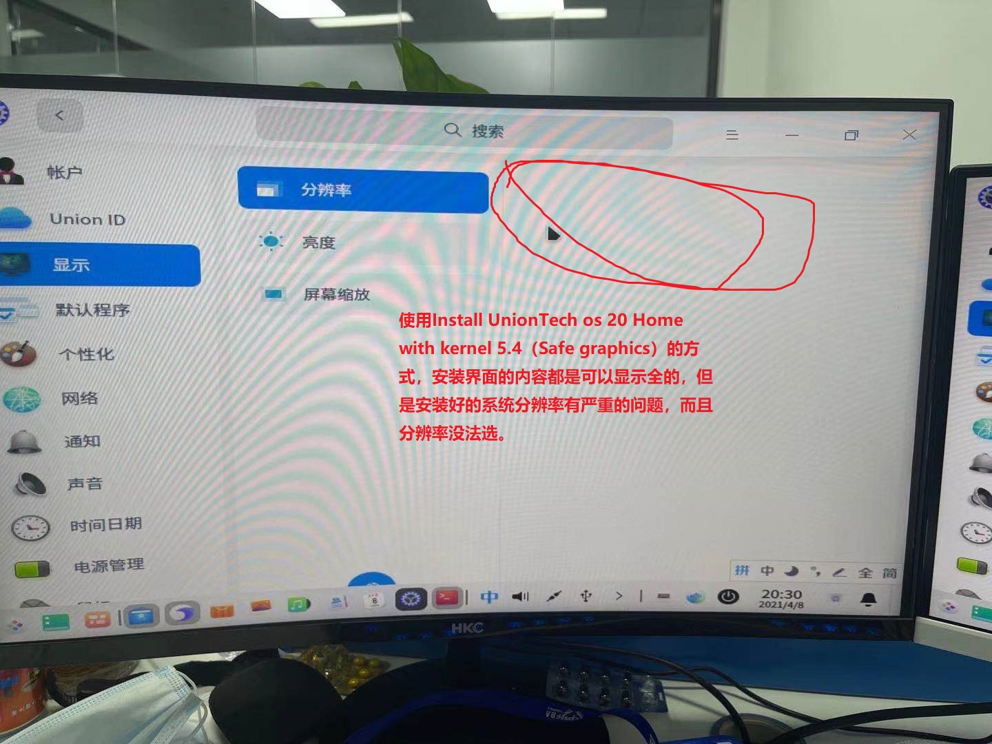 由于需要安装双系统,需要手动安装。但是选择Install UnionTech os 20 Home with kernel 5.4时,安装界面会出现部分没法显示的情况。