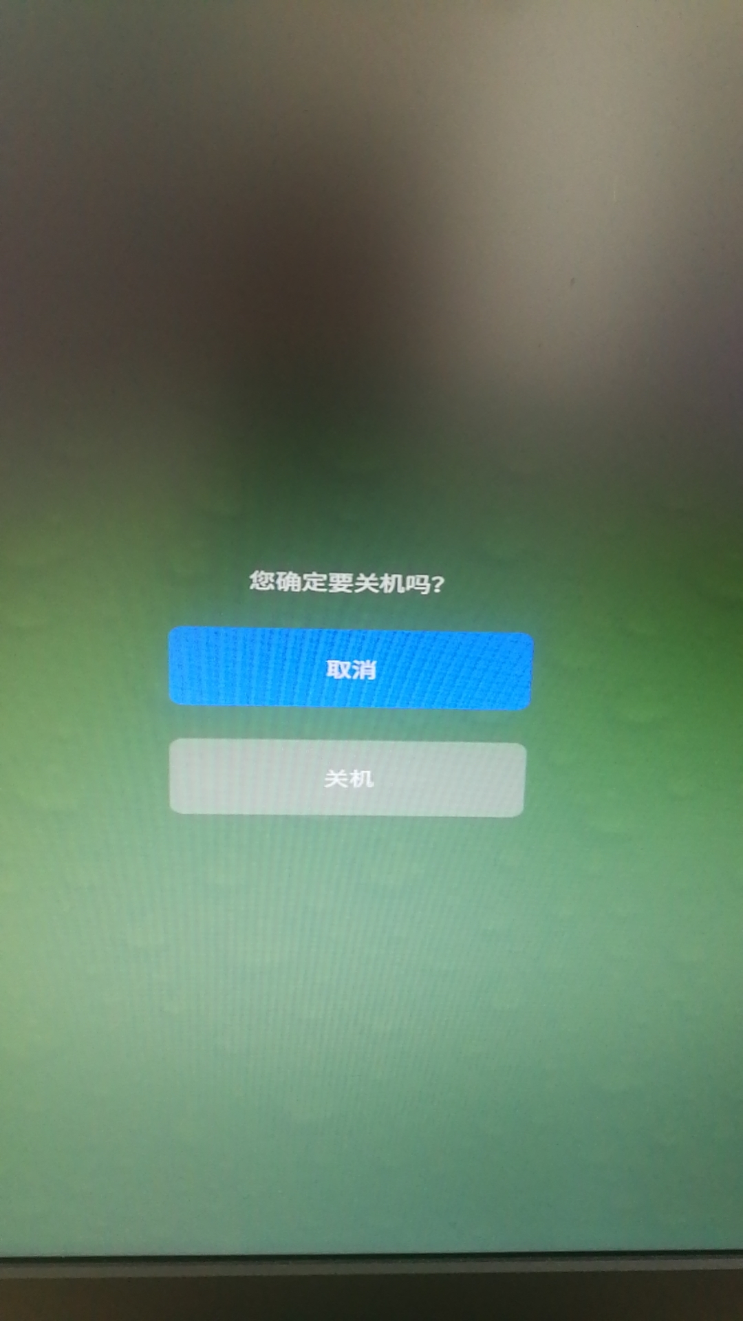 建议:这个关机确认图形界面个人觉得有点OUT,严重不协调,毫无美感可言,是否可改进得让人觉得更协调一点,虽然这完成不影响使用。