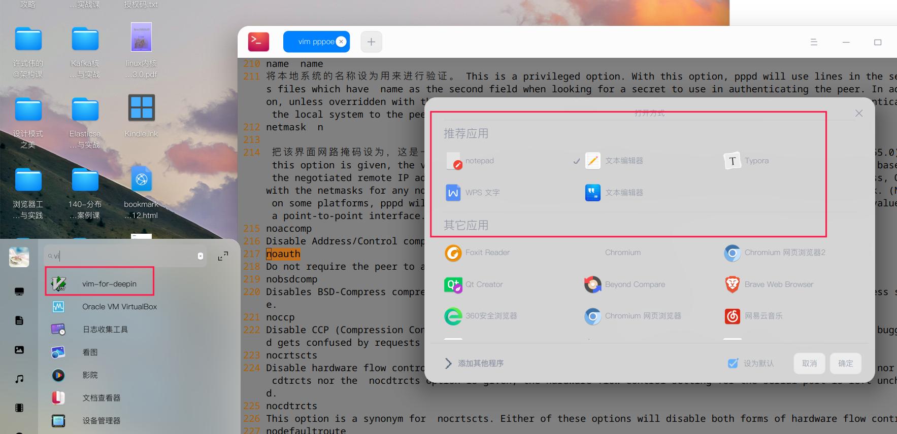 我装了vim-for-deepin,想用它默认打开txt文件,但是推荐应用,其他应用都无法选择这款软件