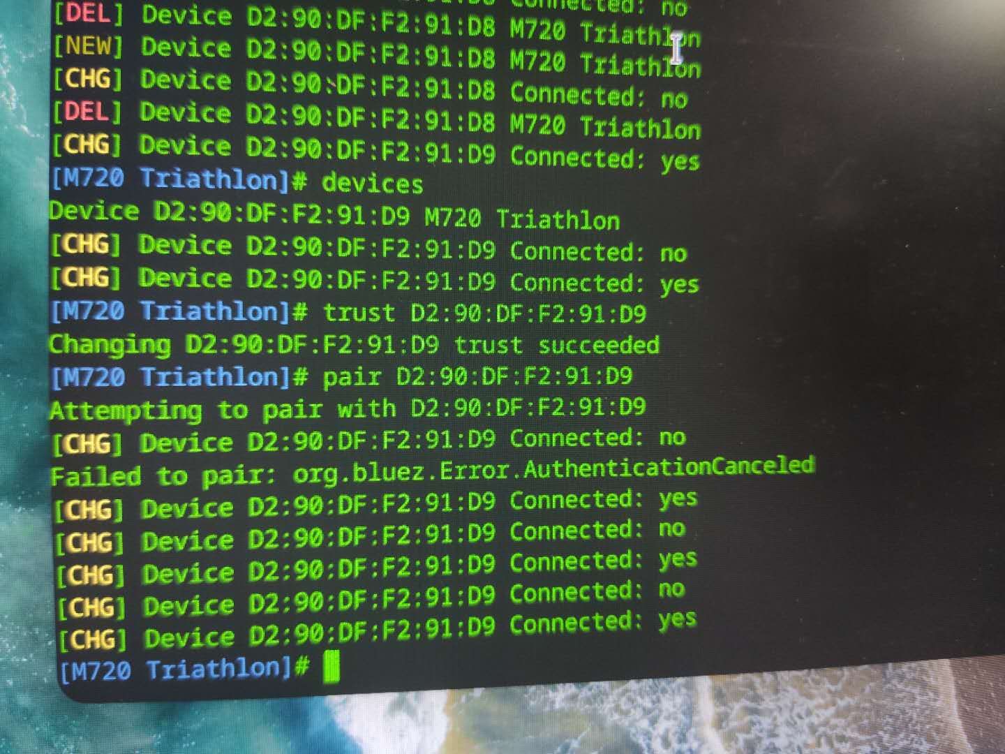 我打开蓝牙管理,提示:orz.bluez.error.authenticationcanceled