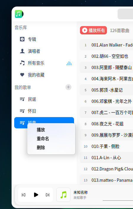 目前,,选择需要的音乐文件,拖到歌单里,,,或者,,使用 Clementine