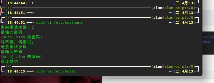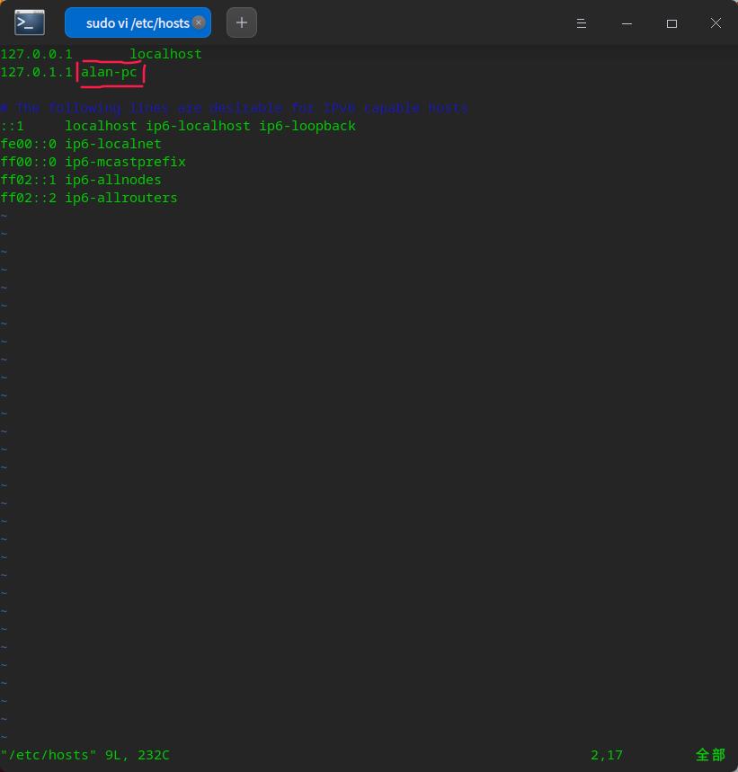 注意这三处需要改得一样不然sudo命令会提示无法解析主机。