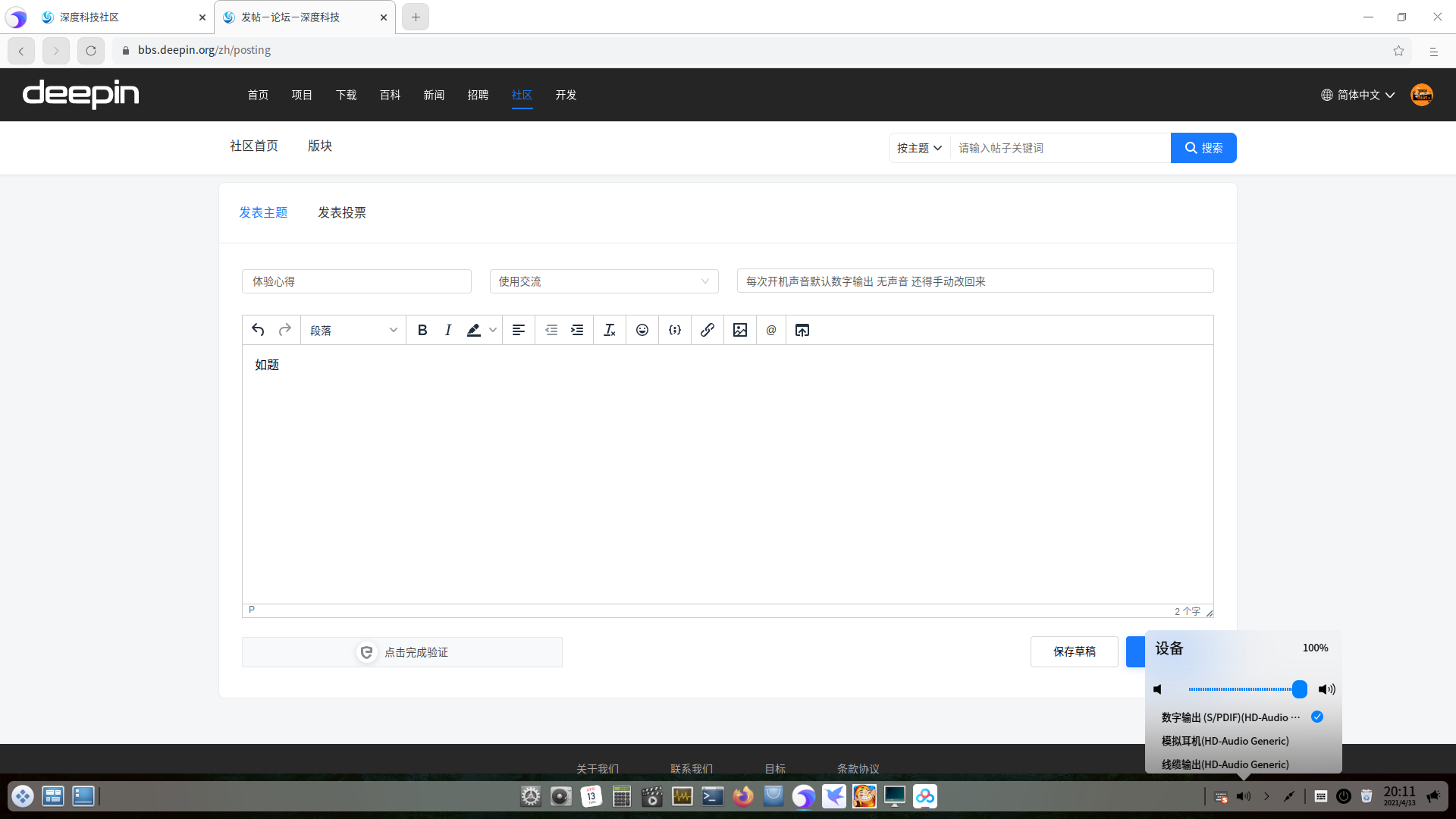 uos反应几个月了,以前至少能默认响声。