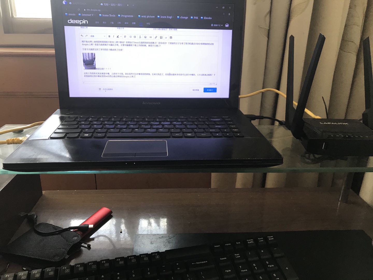 刚开始从网上查找资料看看能不能安上网卡驱动!结果由于linux方面的知识比较匮乏!没有成功!于是前些日子分享了用手机通过USB分享网络的形式给deepin上网!但是当我想离开电脑玩手机,还要电脑继续下载工作的时候,就很不方便了!