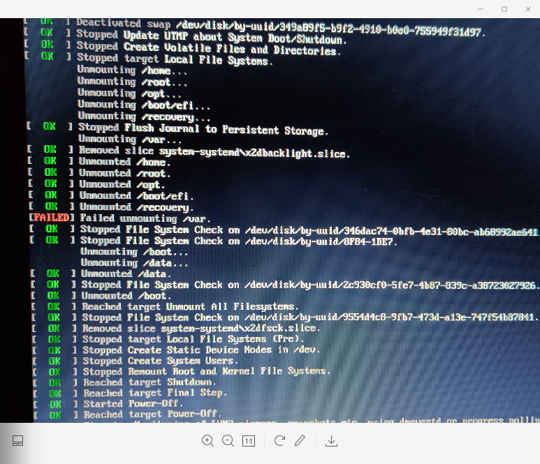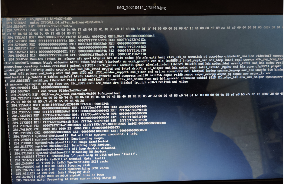 系统更新后(更新成功了),依然关不了机,但报错又变了。
