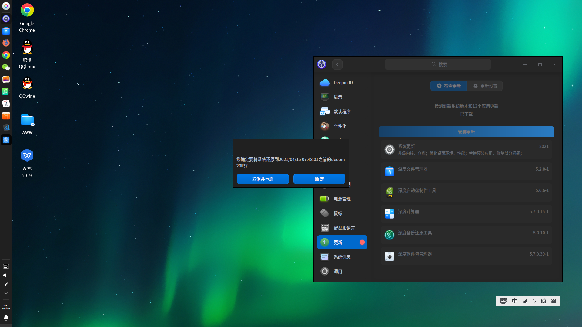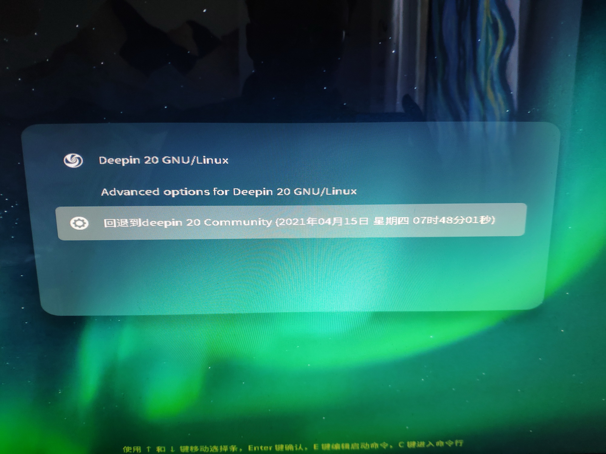 感觉是显卡驱动更新有问题,因为恢复备份过程中发现似乎开始按钮不响应。尝试多种方法通过打开文件管理器进入终端,用命令shutdown关机。