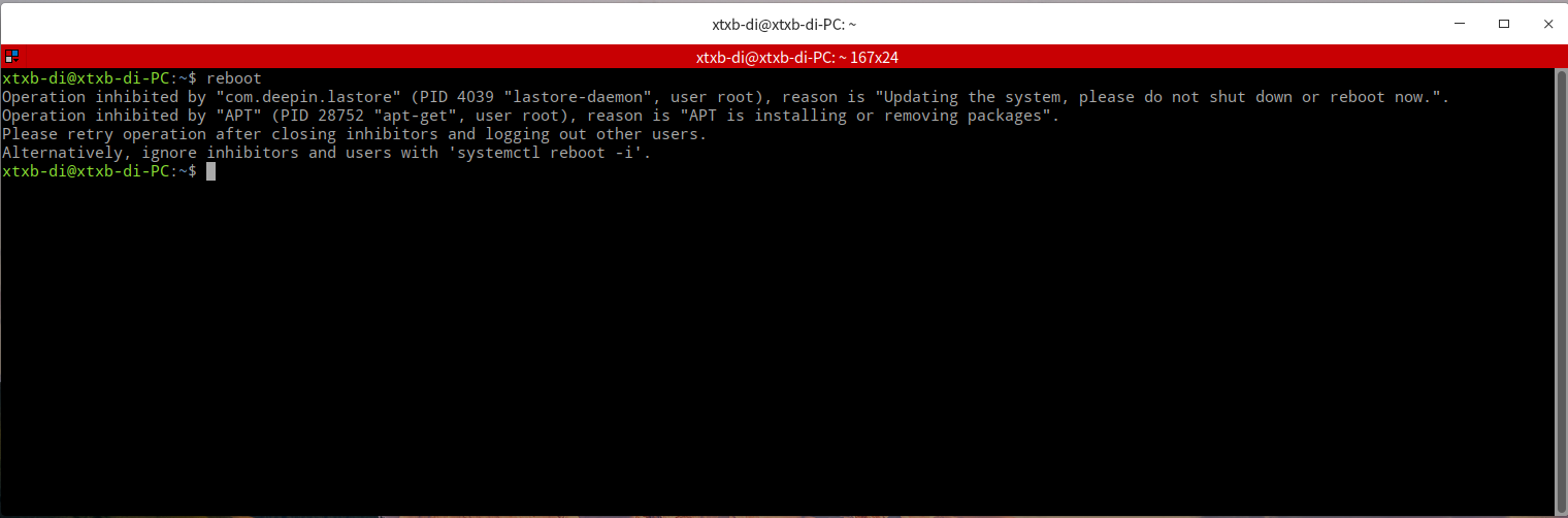 现在重启也不行,提示: