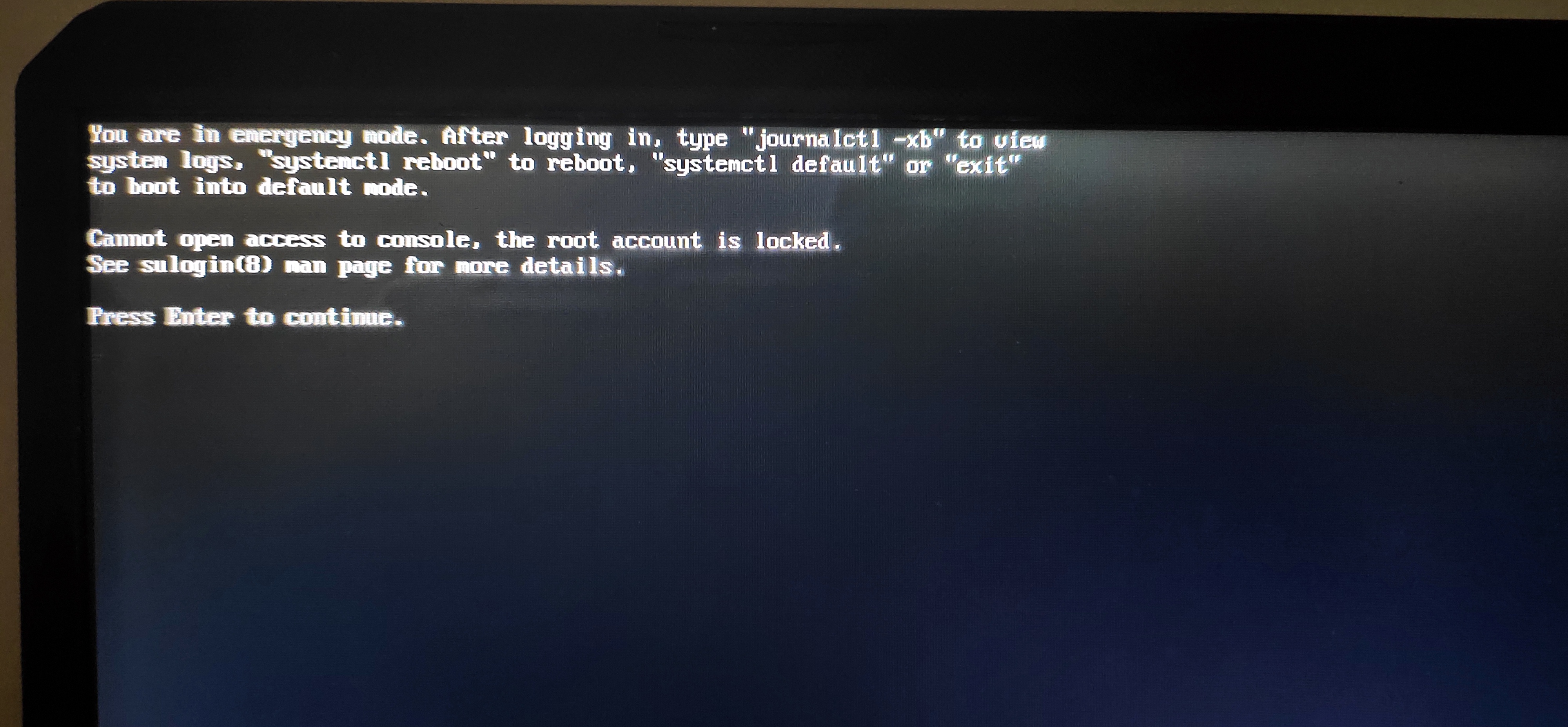 在启动grub 菜单时,按 e 键编辑,在 linux 开始的内核参数那行删除 ro 后面的内容,换成 systemd.unit=multi-user.target ,按CTRL+X启动,用普通帐号登入tty ,试着用官方置顶临时修复贴升级系统试试看